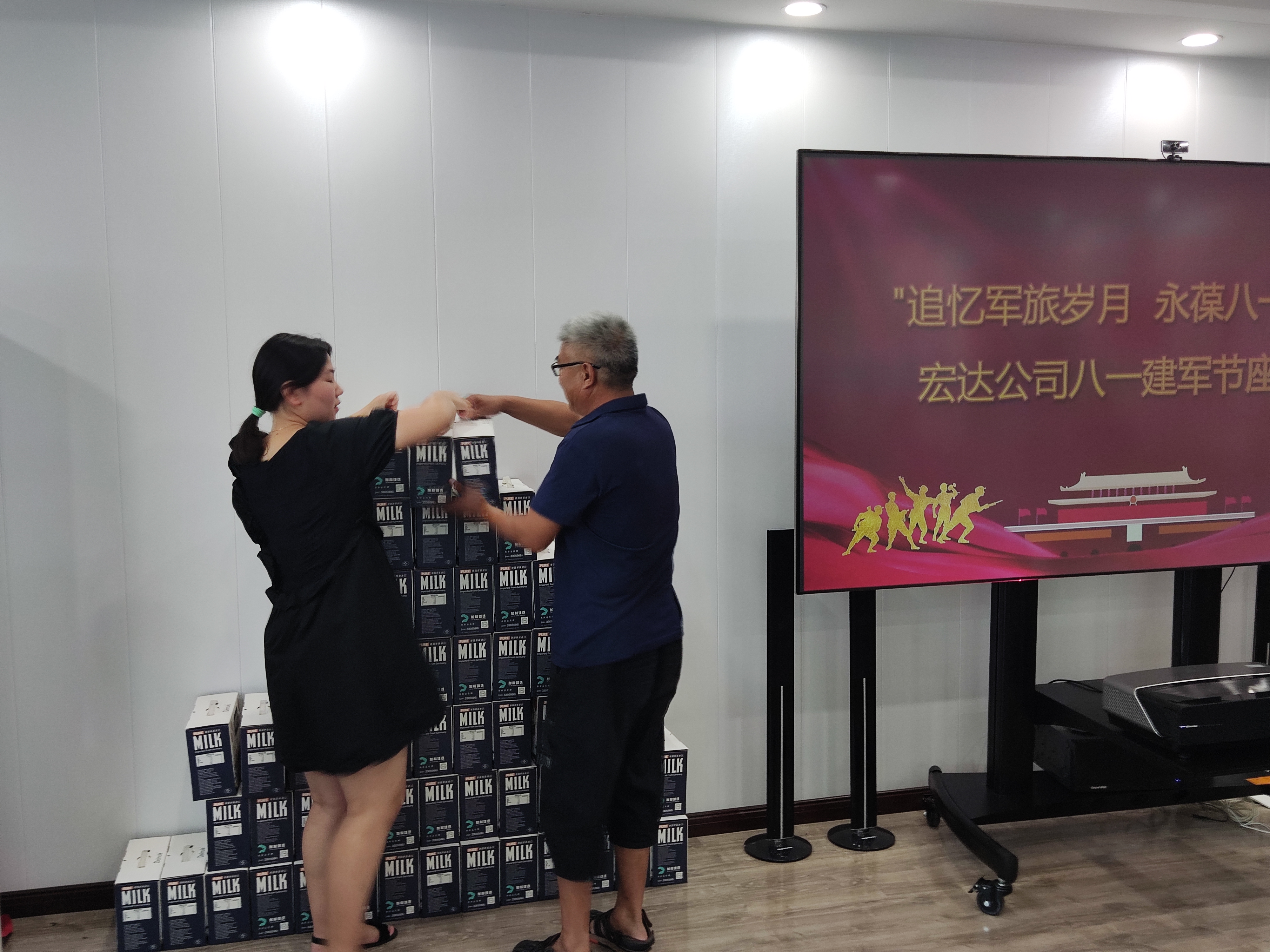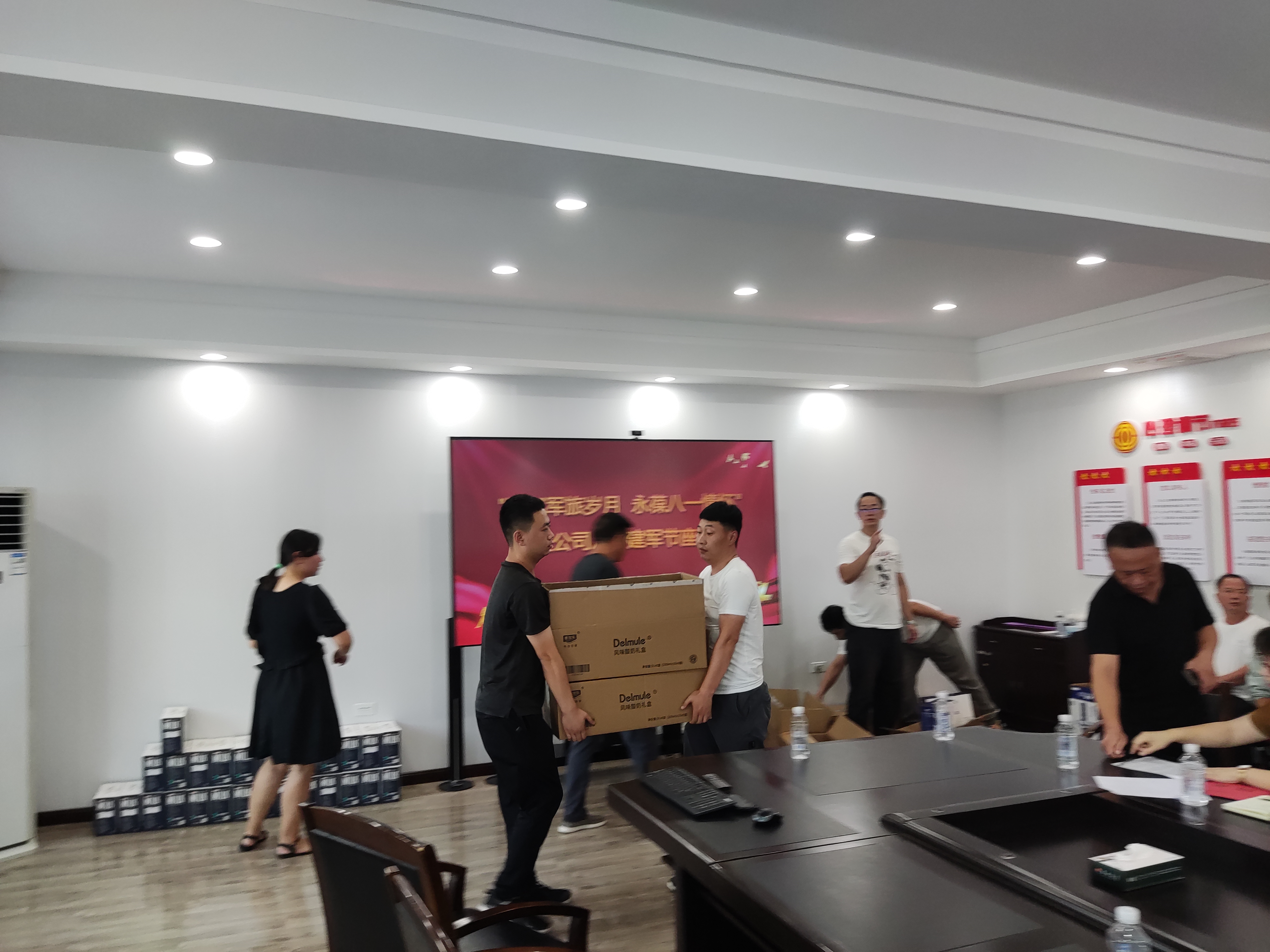 会后公司为广大复员军人发放了节日慰问品。