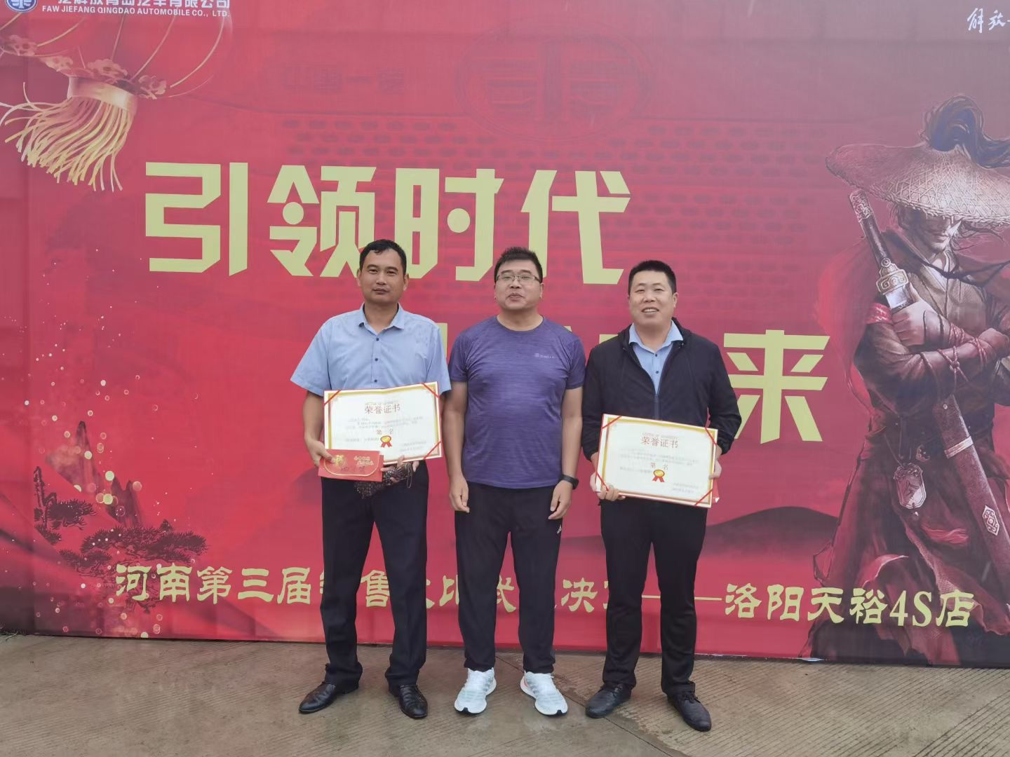 最终,河南第三届销售大比武焦作亚之星参与两人均得名次。因参与人数较多取成绩最好前五名,我们两位业务员张林行荣获第三名、王红砖荣获第四名。颁奖时天空放晴,本次销售大比武圆满落幕!
