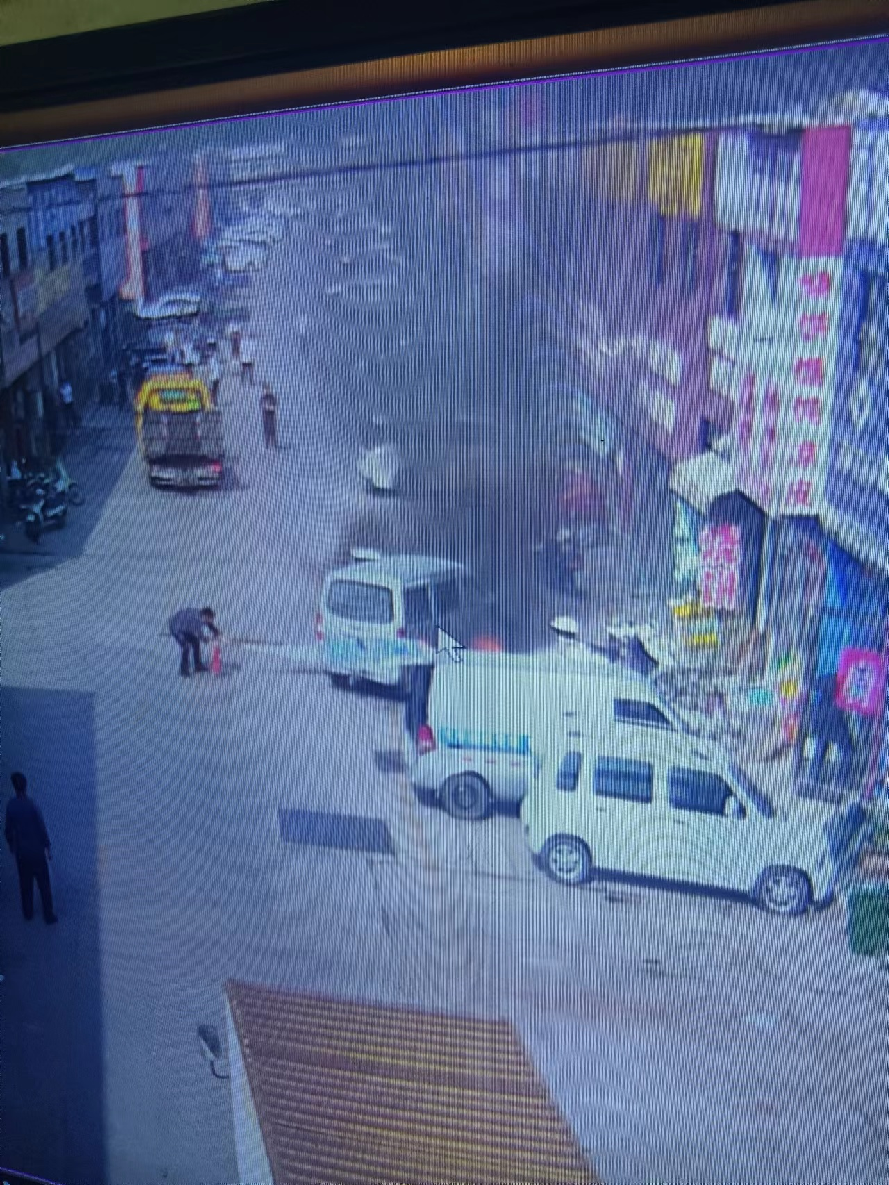 德盛汽配城众志成城 与消防队共同扑灭自燃面包车