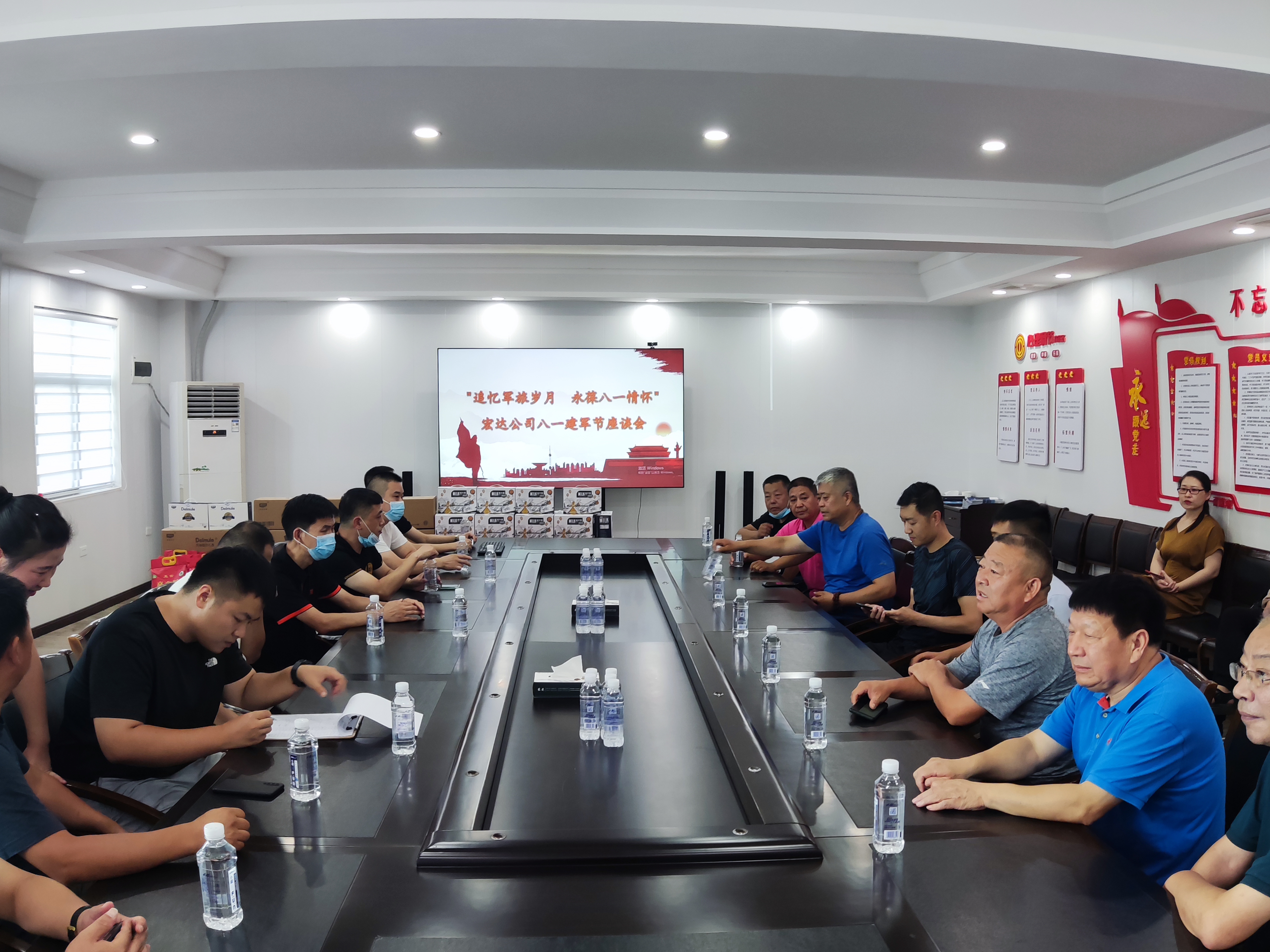 为热烈庆祝中国人民解放军建军95周年,发扬企业优秀文化,传承企业优良传统,增强退伍军人的荣誉感和责任感,进一步弘扬拥军优属的光荣传统。8月1日下午,宏达公司于总部园区内,组织企业退伍军人召开了“追忆军旅岁月,永葆八一情怀”座谈会,为退伍军人送上节日的问候。