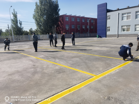 8日早晨,员工准备好钢卷尺、油漆、刷子等工具和材料,分工合作,首先大家取出消防带冲洗地面,清扫过后等地面干透,再进行测量、确定停车位、牵线、喷漆……不一会,黄色长方形停车位一一成型,个个横平竖直,规范标准。停车位地规划充分结合整个现场实际,确保场地利用最大化。在大家的共同努力下,经过两天时间完成了园区机动车车位的划线。