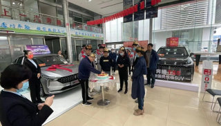 8点20点名完毕,大家一起来到前厅,打开蛋糕,点燃蜡烛,唱起歌曲,用掌声来为六名过生日的员工送出美好的祝福。接着,全体员工来到新车交付区,给琚路翔举行了喜庆的交车仪式。大家都在此刻感受到了无比的自豪和幸福。在当下这个疫情笼罩的低沉时刻,销量不佳,产值不高。而这个时候的温馨一刻,更让大家感受到了团结的力量。让我们知道了,越是艰难,越要凝聚。坚持度过这低迷的阶段,我们所有员工一起努力,努力让公司走出低谷,在我们热爱的工作岗位上尽到每个人应尽的责任,更积极主动地去做好每一件事,为公司发展下去凝心聚力。