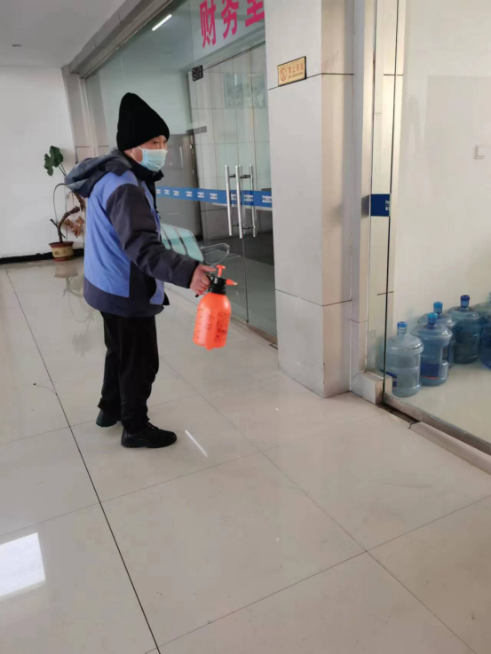 为了给员工们创造一个干净、安全的健康工作环境,我公司安排专人负责园区的消杀工作。采用84消毒液对公共区域和办公区域进行定时、全面喷洒式消毒。