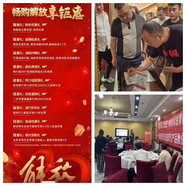 此次宣传促销,除了常规的价格、赠品、质保期等优惠以外,还承诺可以和用户签署油耗对赌协议,油耗超标由我方承担。当然,这一政策是源于长春解放产品的节油技术目前相当成熟,只是未在我们的区域形成一定规模的口碑。不少用户觉得解放既然敢对油耗这么自信,也都产生了极大的兴趣,甚至有部分用户,当场表达了后续将使用解放产品的意愿。