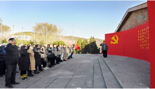 在宣誓广场,党员们面向党旗重温了入党誓词,并高唱红歌《没有共产党就没有新中国》。