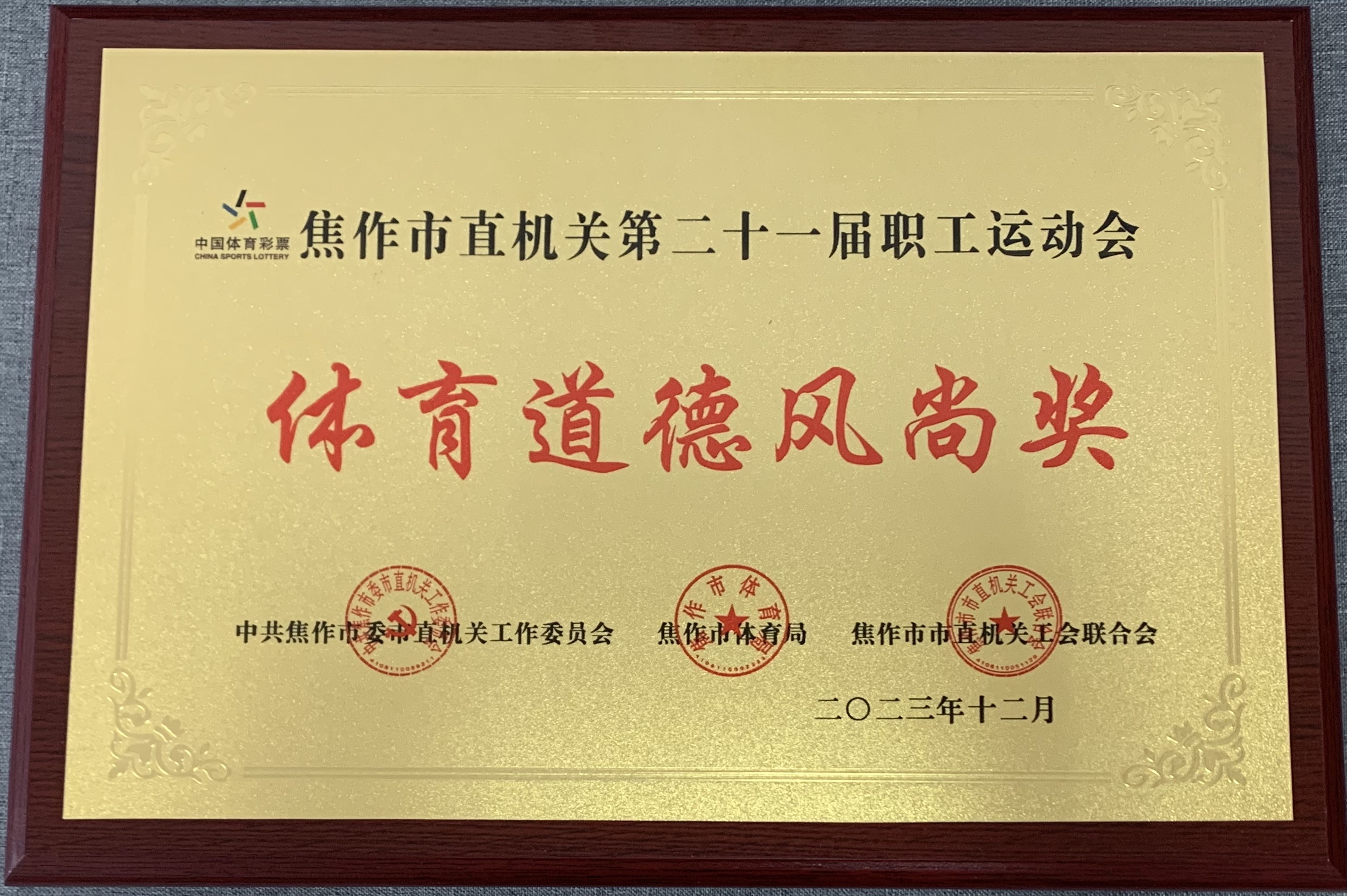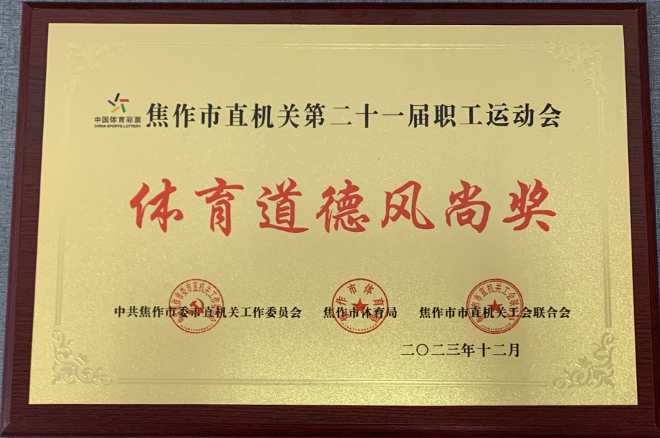喜报!近日,焦作市直机关第二十一届职工运动会圆满闭幕,焦作市宏达公司代表队发挥出色,在多项比赛中取得佳绩,并荣获“体育道德风尚奖”集体荣誉称号。