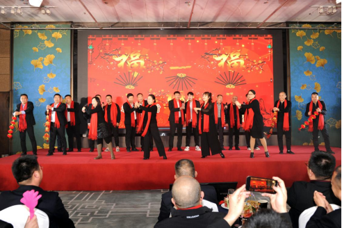 19:00大会正式开始,会议在主持人李嘉欣、张继学铿锵有力的话语中拉开帷幕,紧接着由各单位(科室)负责人载歌载舞、喜气洋洋地表演了开场节目——《恭喜发财》,为本次大会增添了轻松愉悦的氛围色彩。