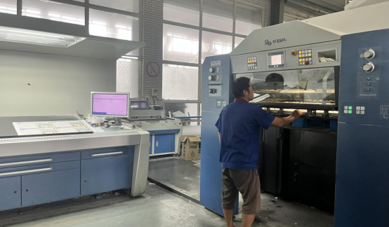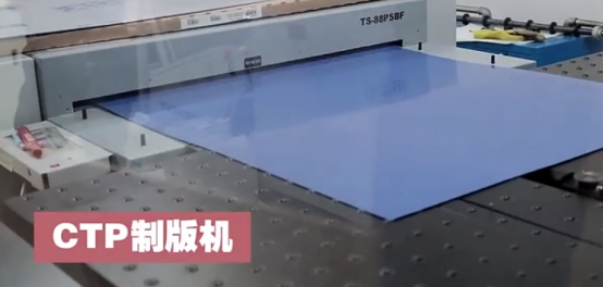 晒版就是用 CTP 技术把检查核对好的电子文件扫描、曝光、转移到印版上。印版是用于传递油墨至纸张上的图文载体,印版出好后由工作人员进行检查,查看是否有刮伤刮花和未曝光好的情况,检查无误后就可以送至印刷车间进行上版印刷。