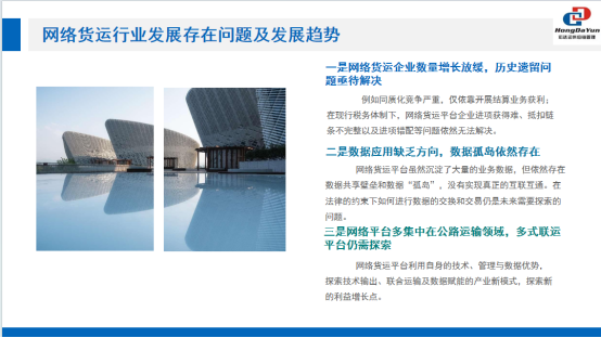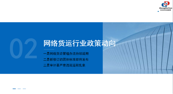 会上首先讲述了网络货运平台的发展现状,讲解了在大会中了解到的关于网货行业的最新政策和动向,浅析了网络货运行业目前遇到的困难和发展趋势。