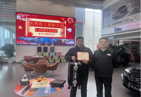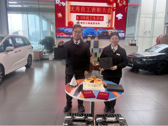 为弘扬担当奉献精神、树立客户服务标杆,凝聚团队奋进力量, 3月2日,焦作大硕汽车在展厅隆重举行2026年2月份先进表彰仪式及3月份员工生日会。全体员工齐聚一堂,共同见证榜样荣光,分享成长喜悦,以表彰鼓干劲、以温情聚人心,开启新一年度奋进新征程。